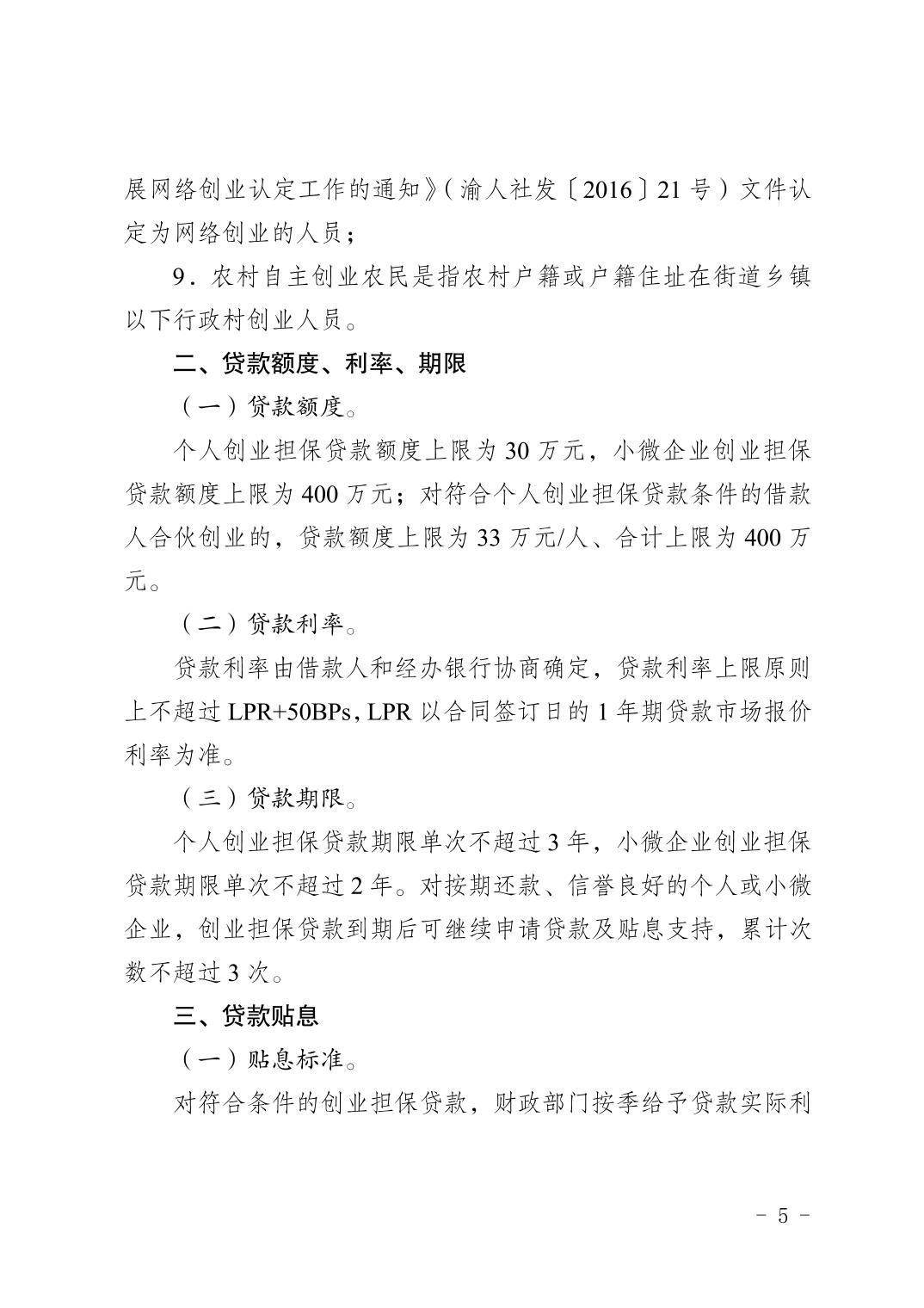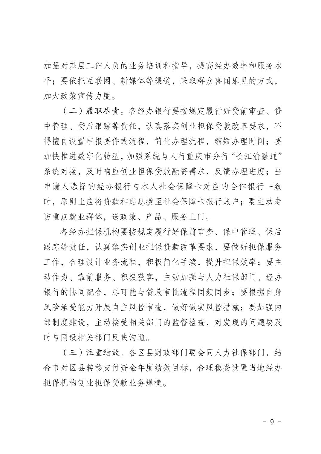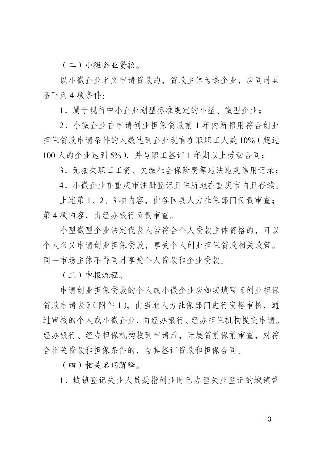 重慶市人力資源和社會保障局+重慶市財政局+中國人民銀行重慶市分行關于進一步做好創業擔保貸款工作的通知