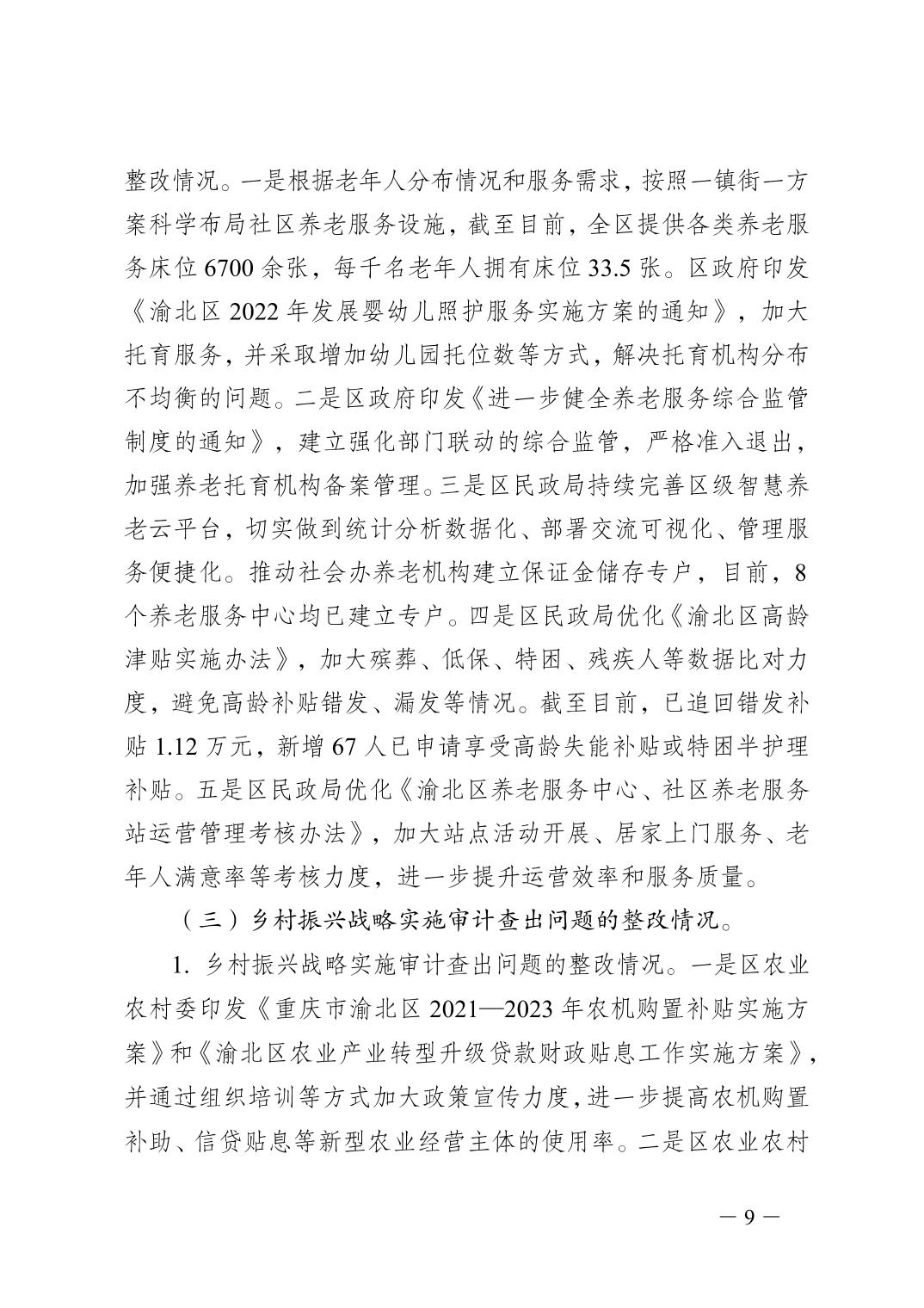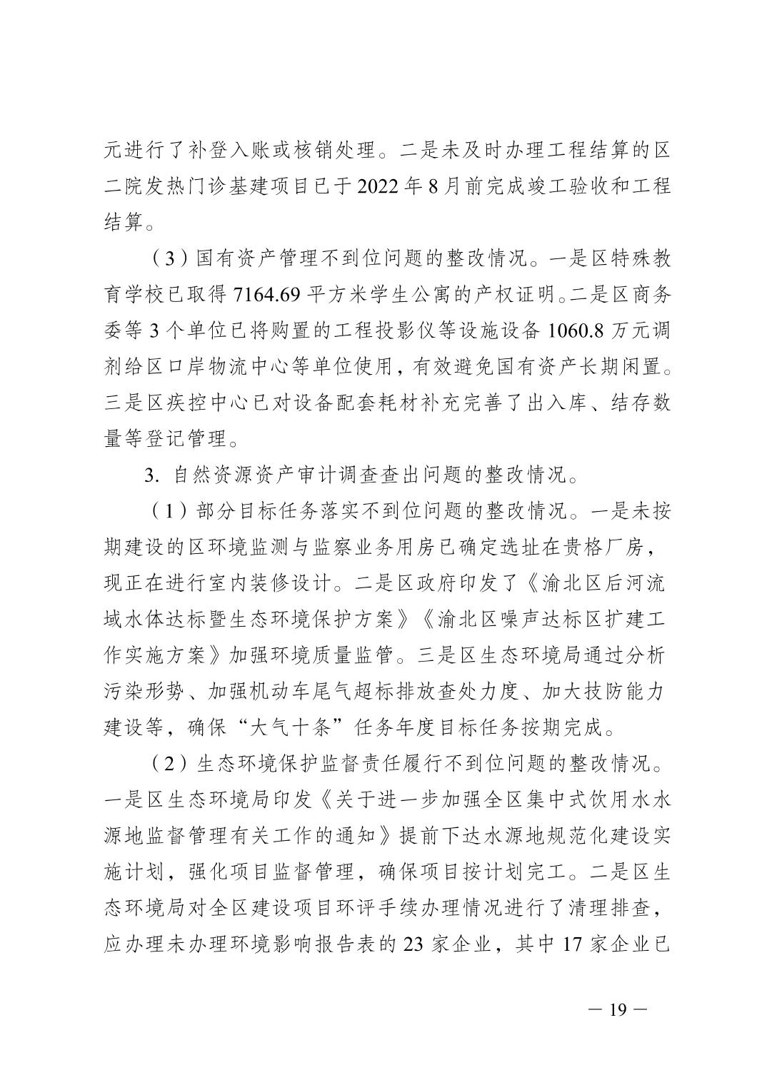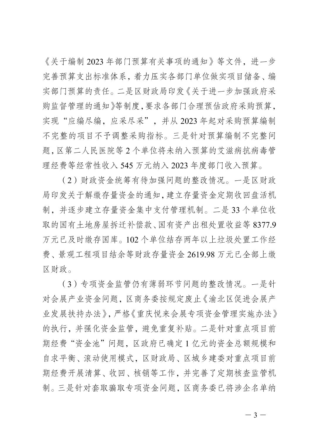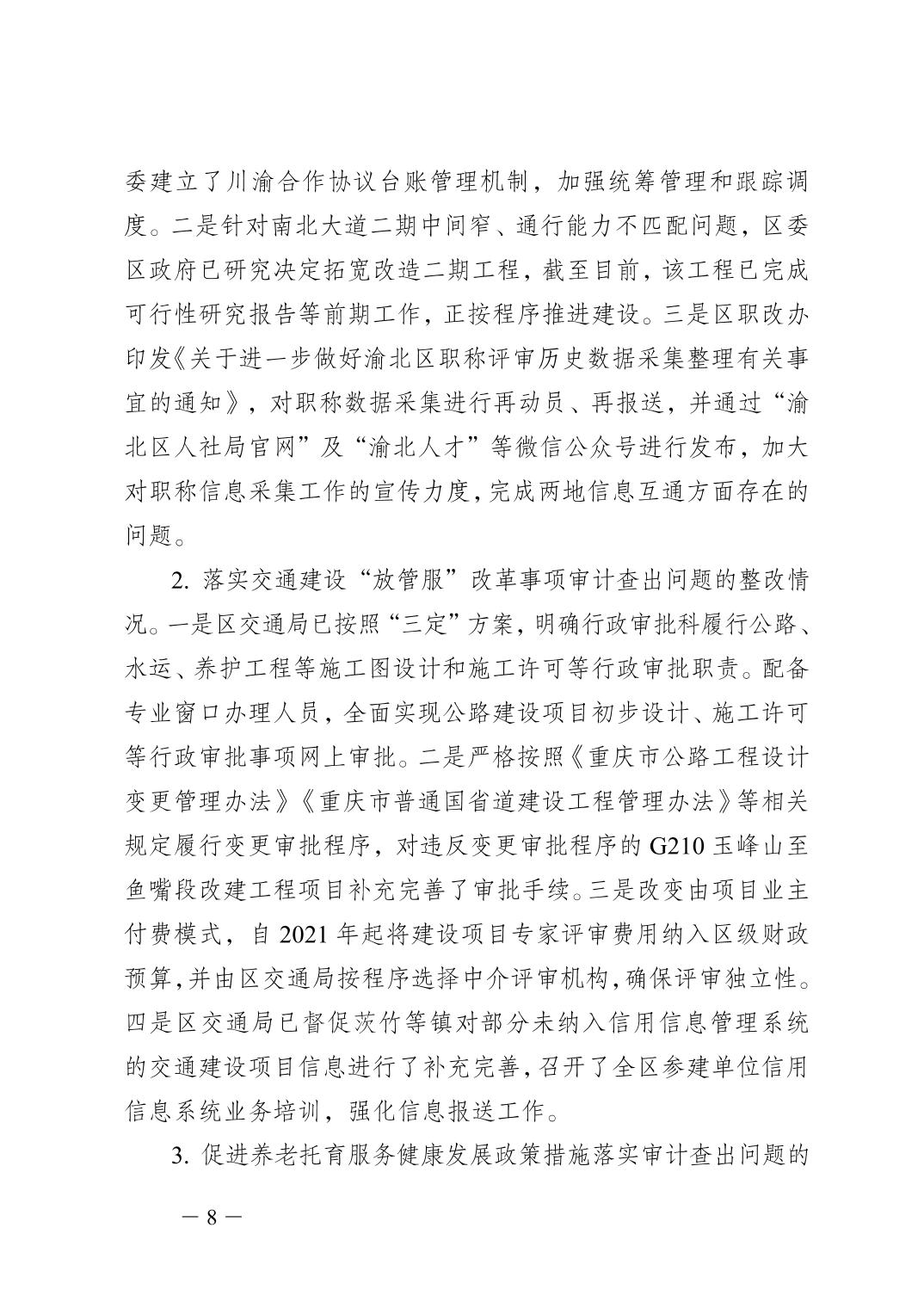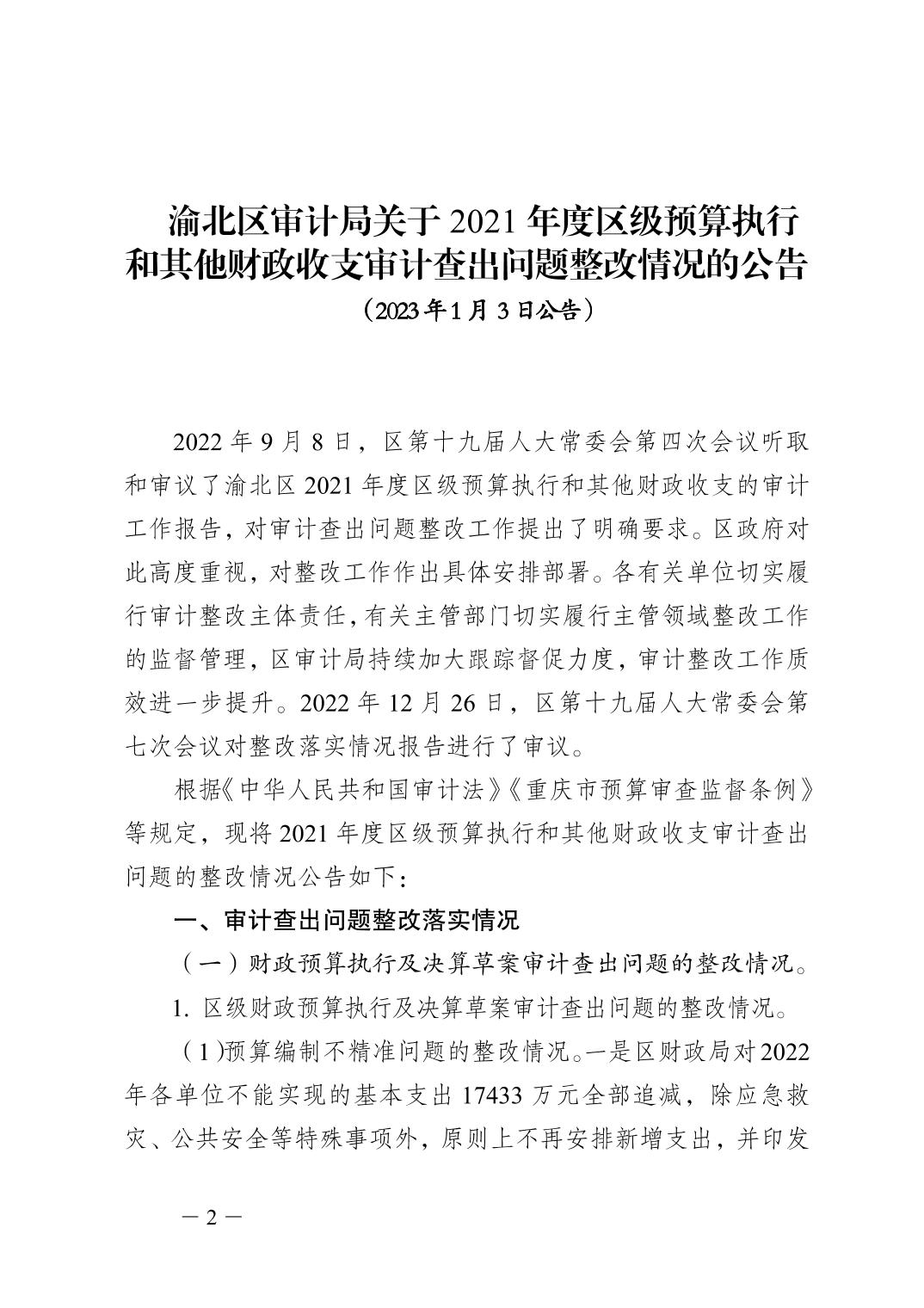 渝北區審計局關于2021年度區級預算執行和其他財政收支審計查出問題整改情況的公告