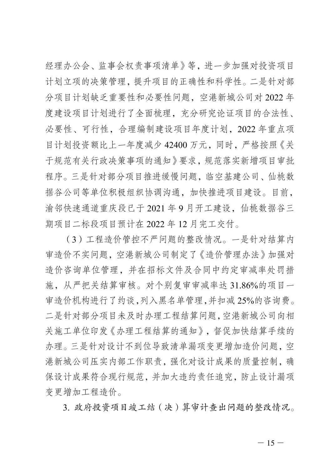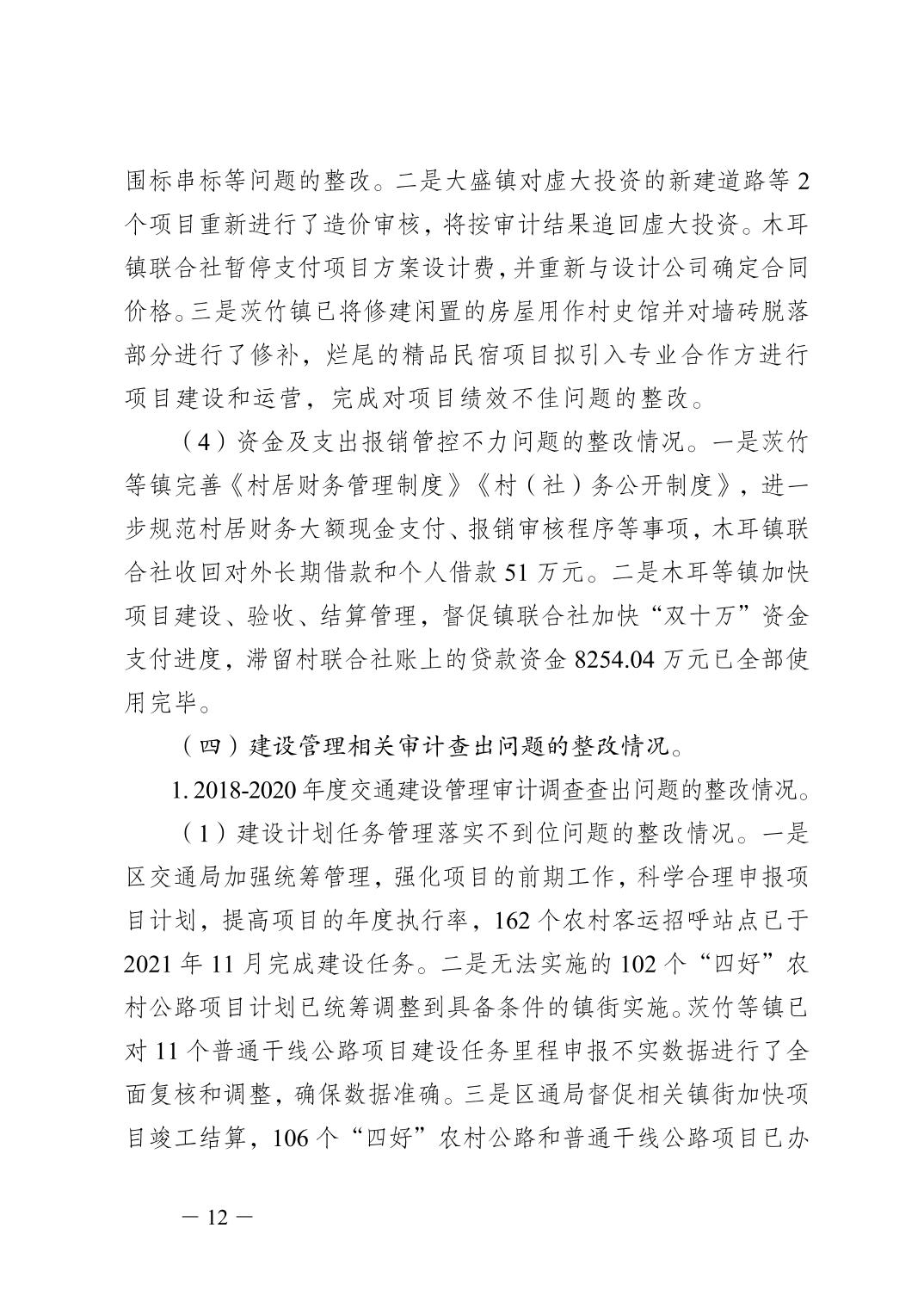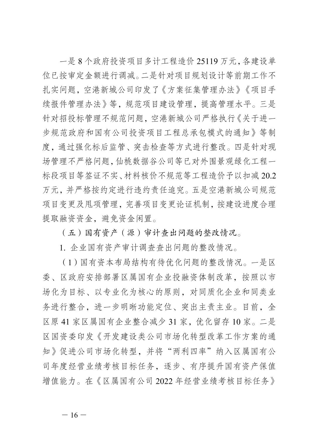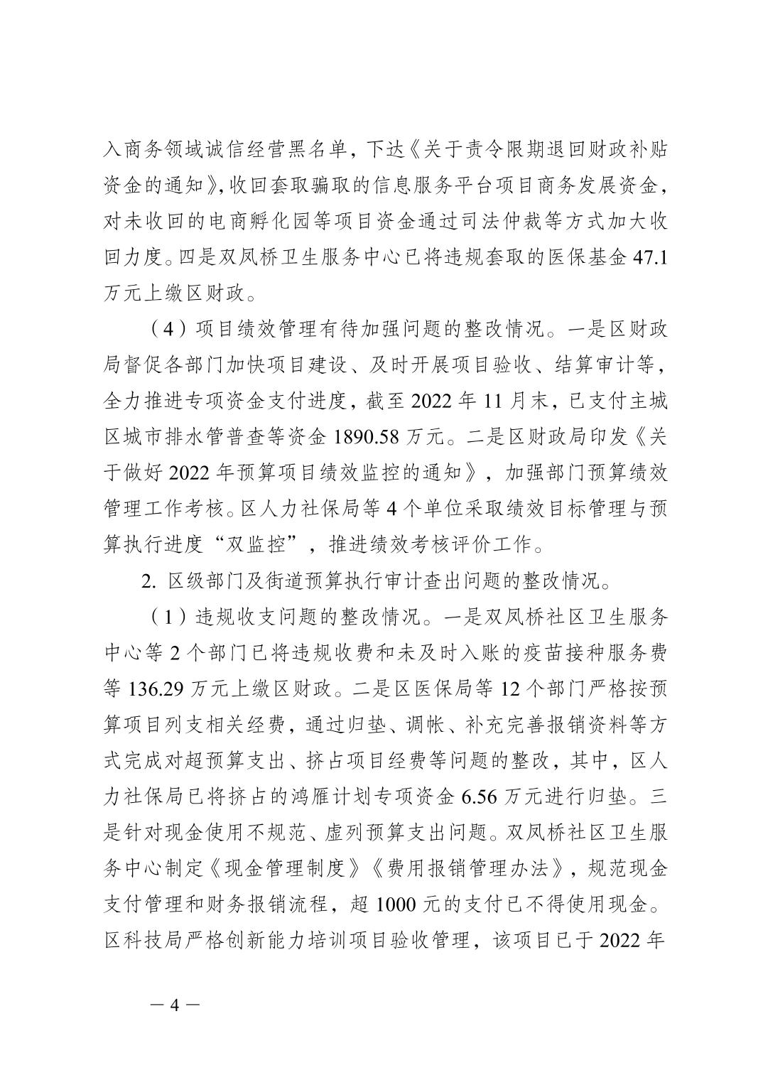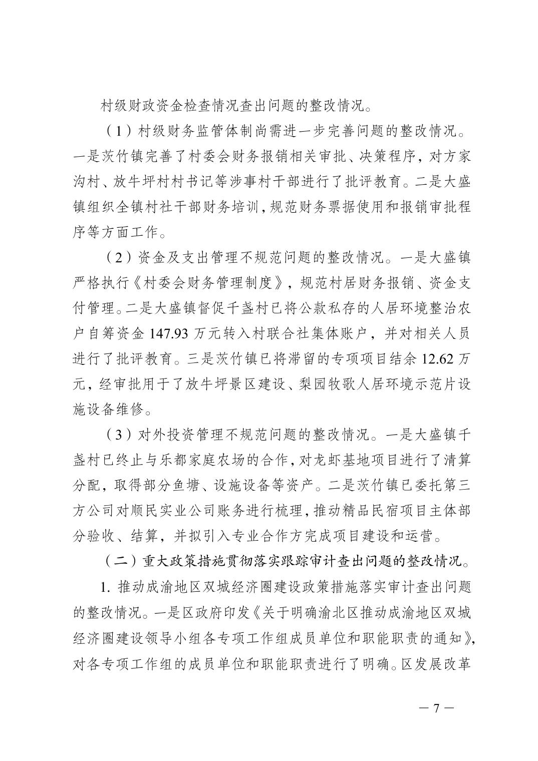 渝北區審計局關于2021年度區級預算執行和其他財政收支審計查出問題整改情況的公告