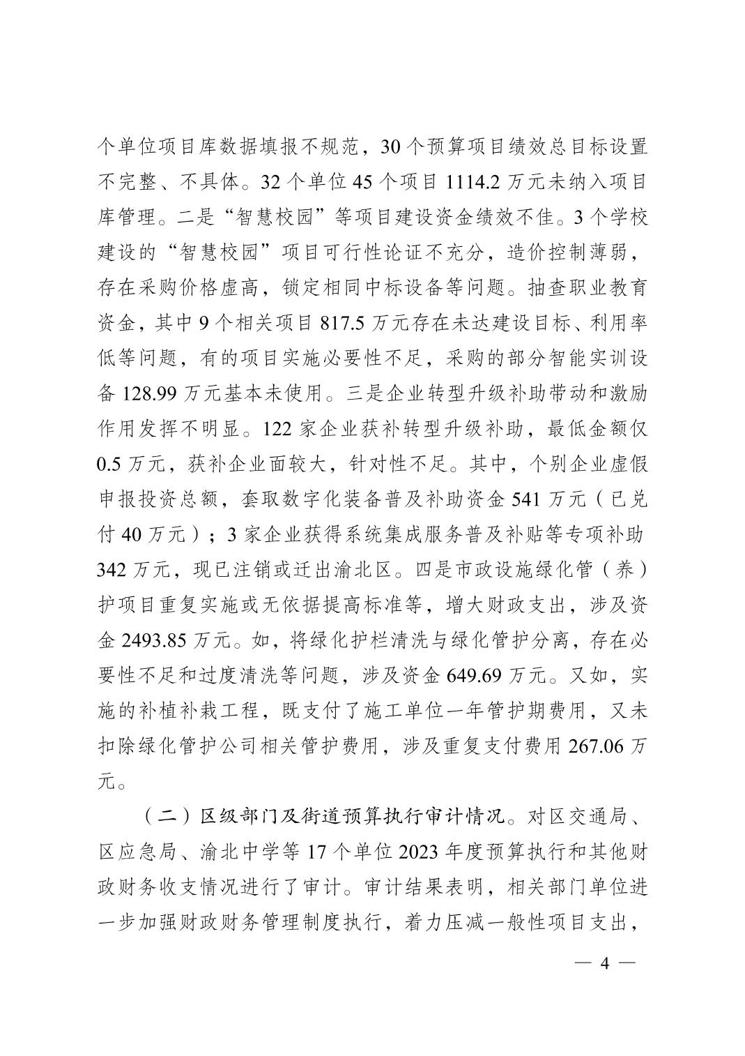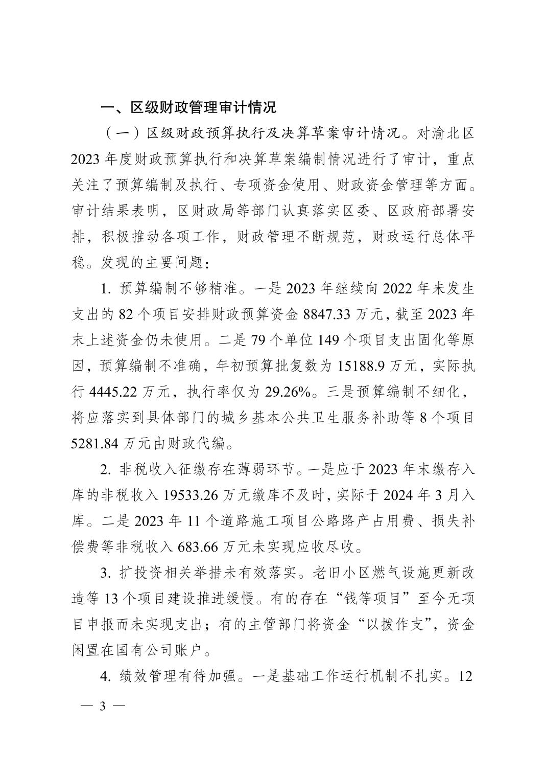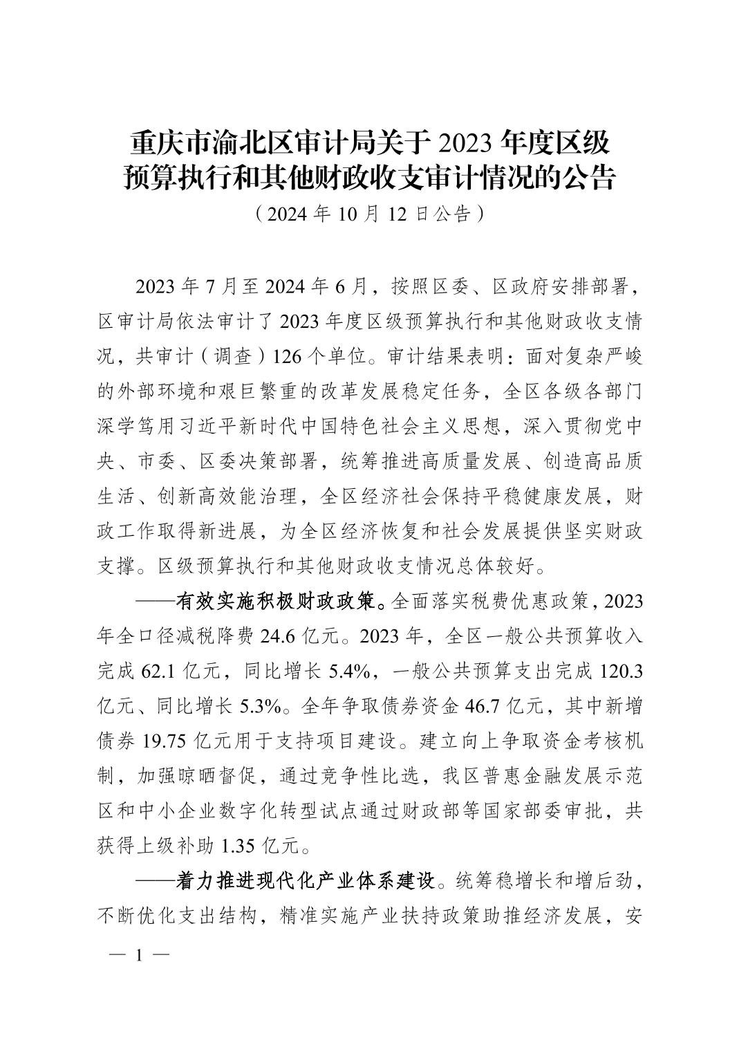重慶市渝北區(qū)審計局關(guān)于2023年度區(qū)級預(yù)算執(zhí)行和其他財政收支審計情況的公告