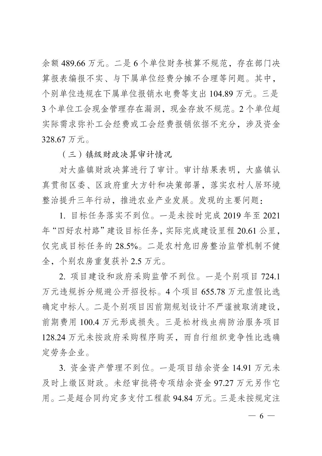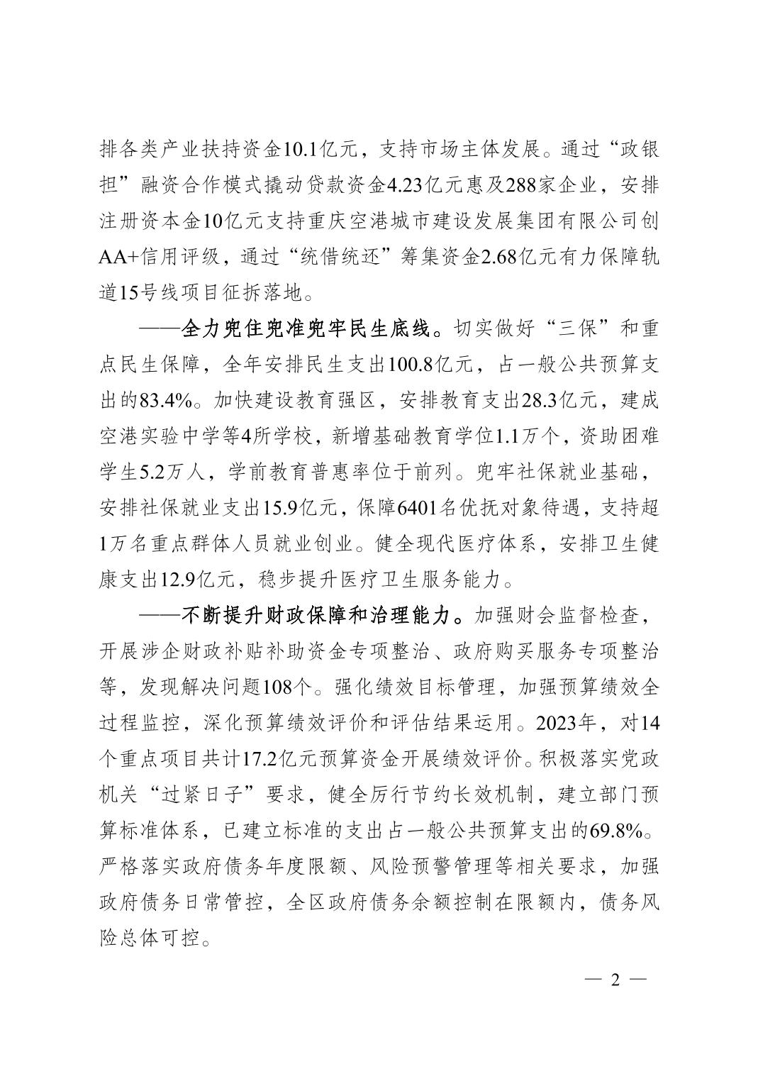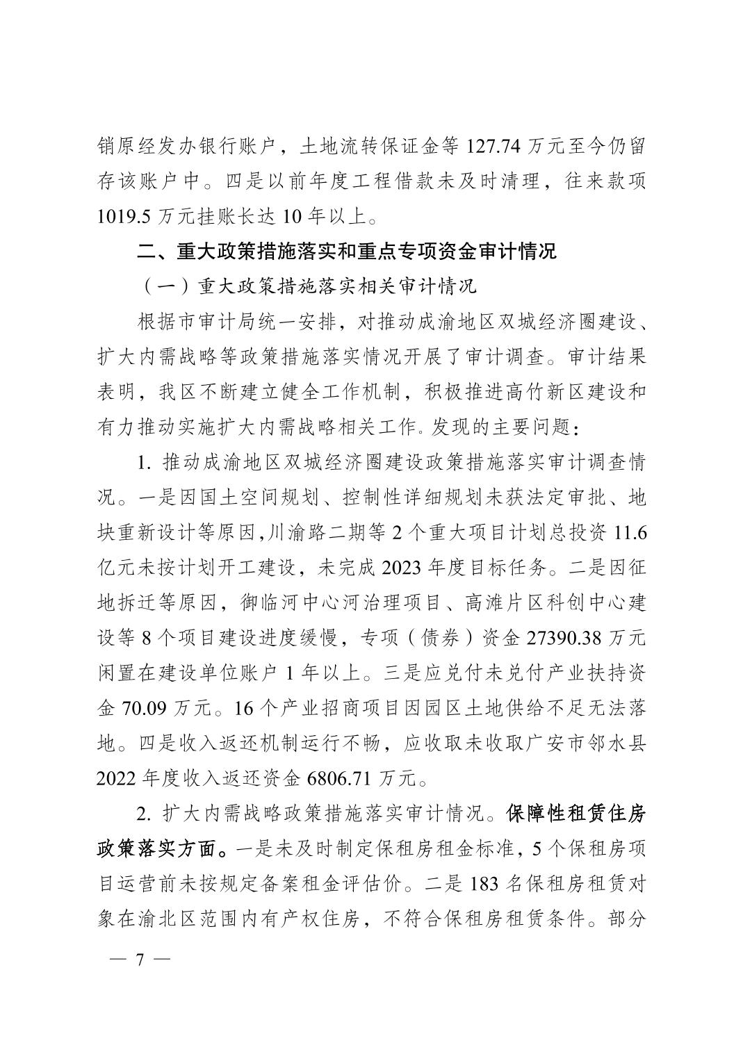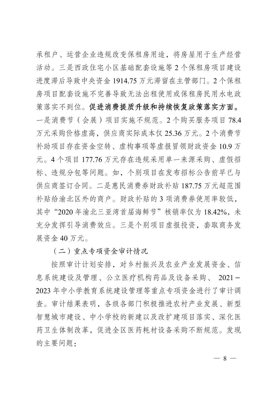 重慶市渝北區(qū)審計局關(guān)于2023年度區(qū)級預(yù)算執(zhí)行和其他財政收支審計情況的公告