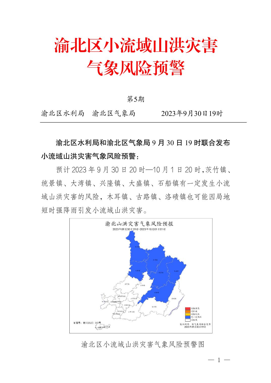 渝北區(qū)小流域山洪災(zāi)害氣象風(fēng)險預(yù)警(2023年第5期)