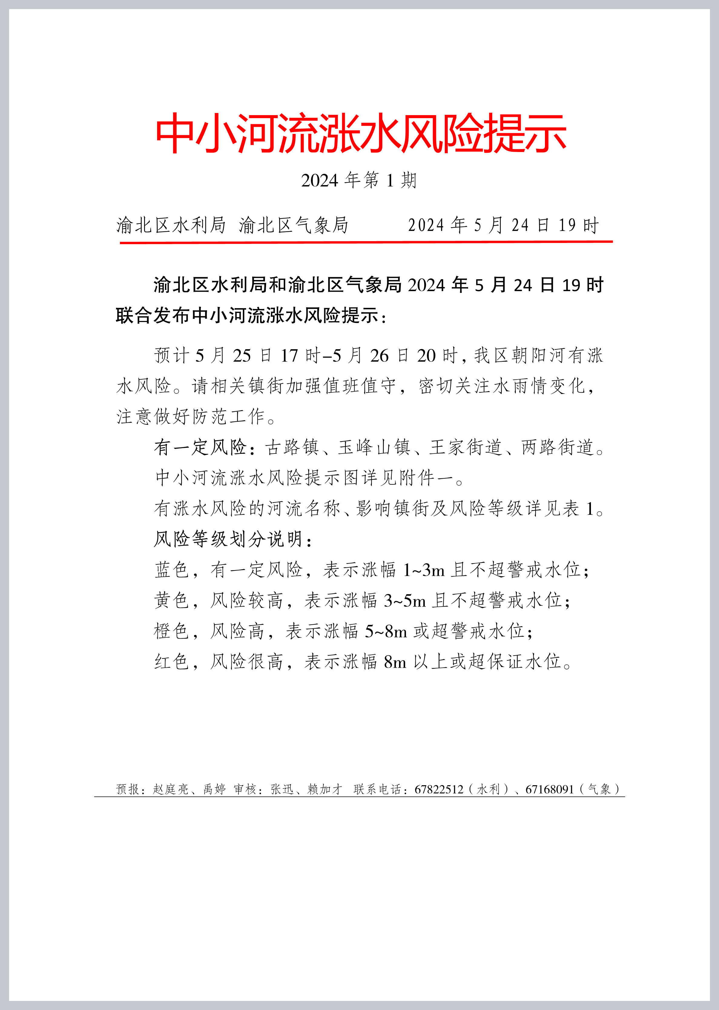 中小河流漲水風(fēng)險(xiǎn)提示(2024年第1期)