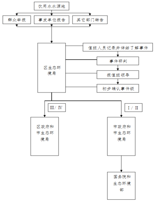 (4)區生態環境局要積極開展并配合區級有關成員單位認真開展環境信息、常規環境監測數據綜合分析和風險評估工作,對發生在轄區境外和轄區內有可能對本區飲用水源地產生影響或造成飲用水源地污染事故的,應立即報告區生態環境局。區生態環境局根據實際情況分級響應。