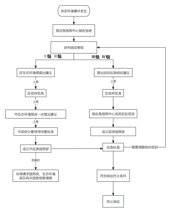 附圖3渝北區生態環境局飲用水源突發環境事件應急響應流程圖