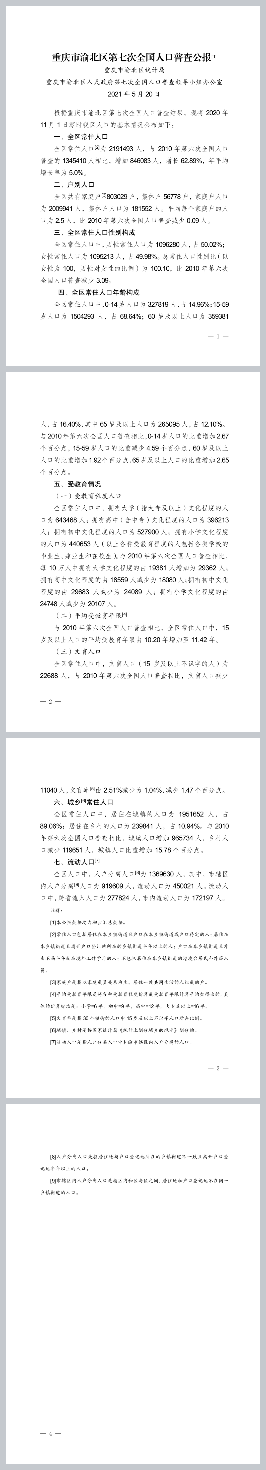 【一圖讀懂】重慶市渝北區第七次全國人口普查公報