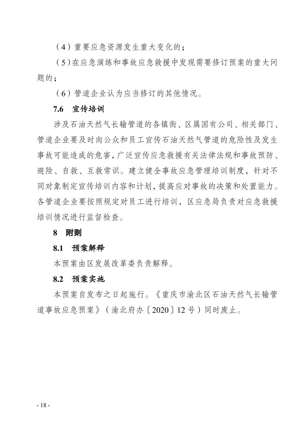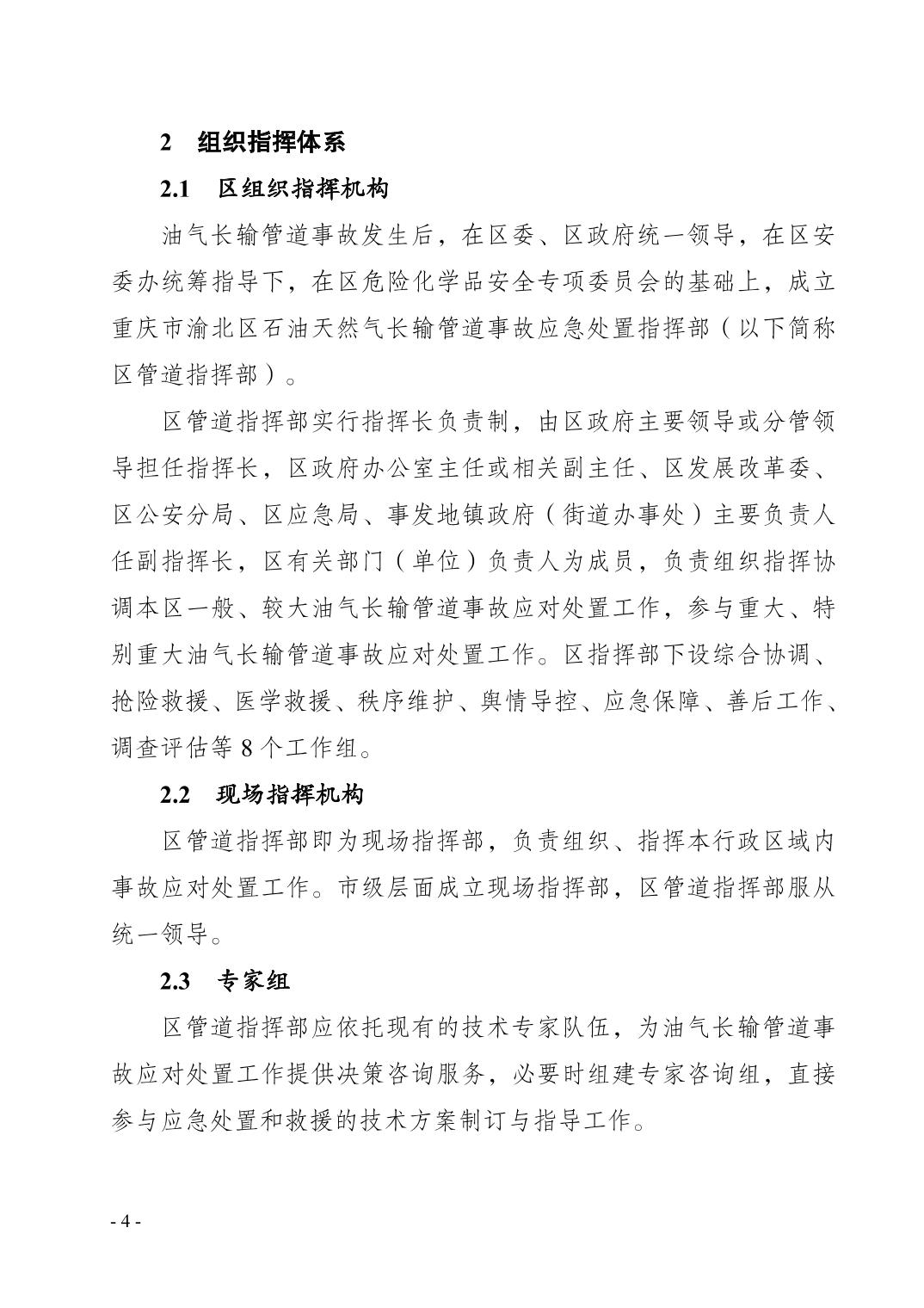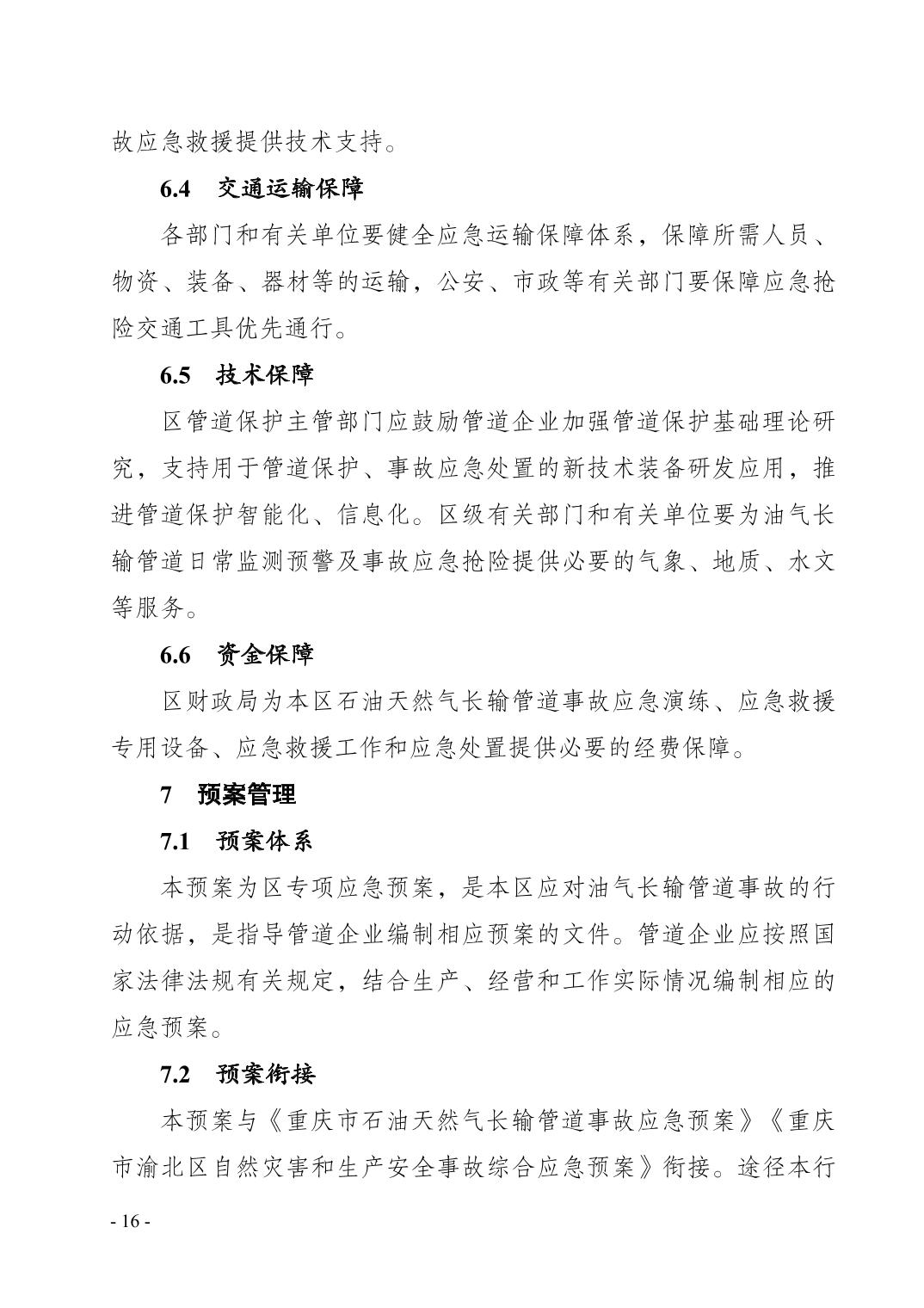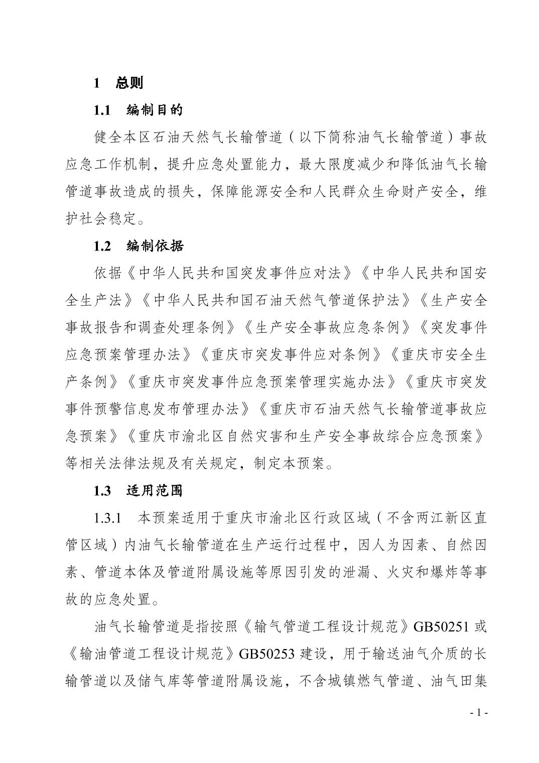 重慶市渝北區人民政府辦公室關于印發《重慶市渝北區石油天然氣長輸管道應急預案》的通知