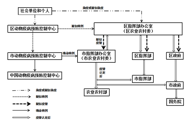 (2)區(qū)指揮部辦公室劃定疫點、疫區(qū)、受威脅區(qū),組織開展緊急流行病學調查、應急監(jiān)測和風險分析等工作,并按照規(guī)定向區(qū)指揮部、區(qū)政府和市指揮部辦公室報告。