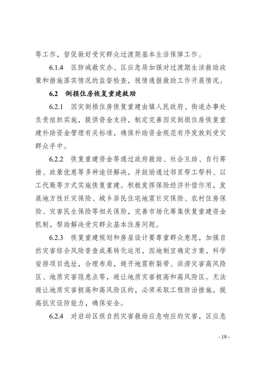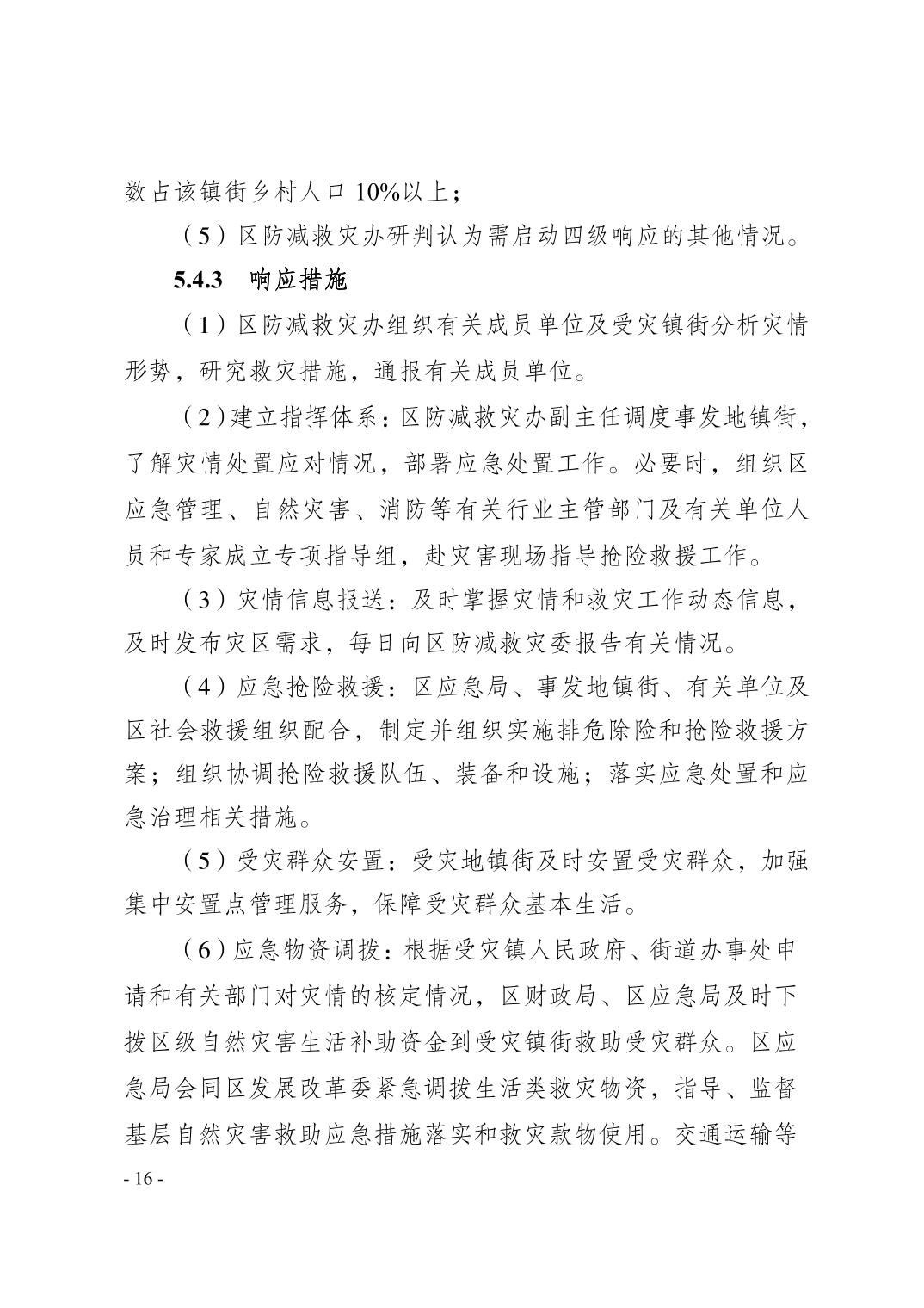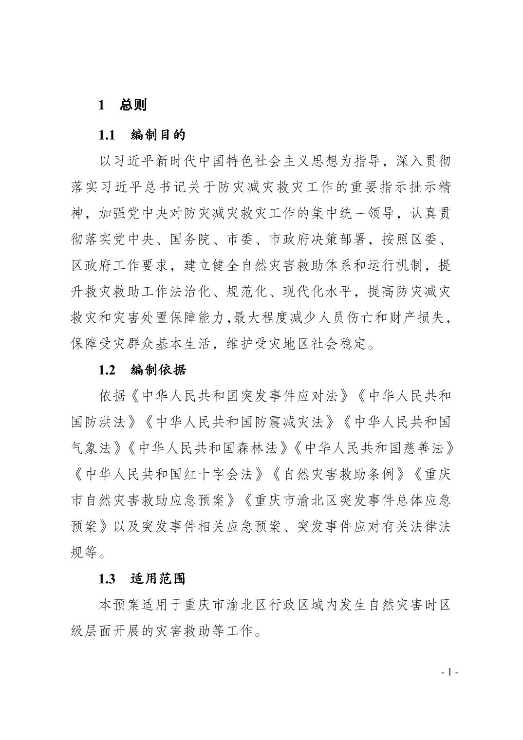 重慶市渝北區人民政府辦公室關于印發重慶市渝北區自然災害救助應急預案的通知