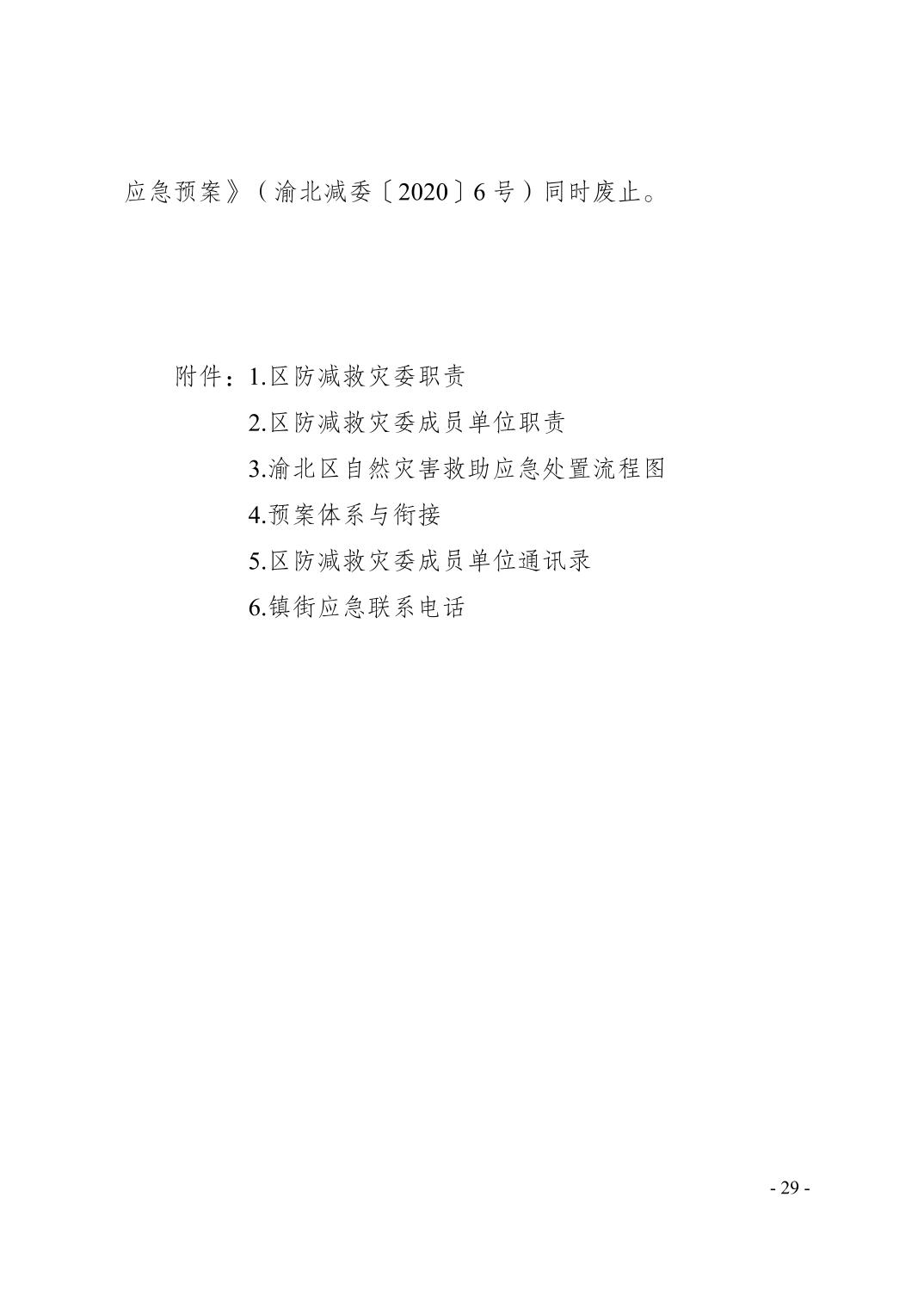 經商有關單位,并報請區政府同意,現將《重慶市渝北區自然災害救助應急預案》印發給你們,請認真貫徹執行。