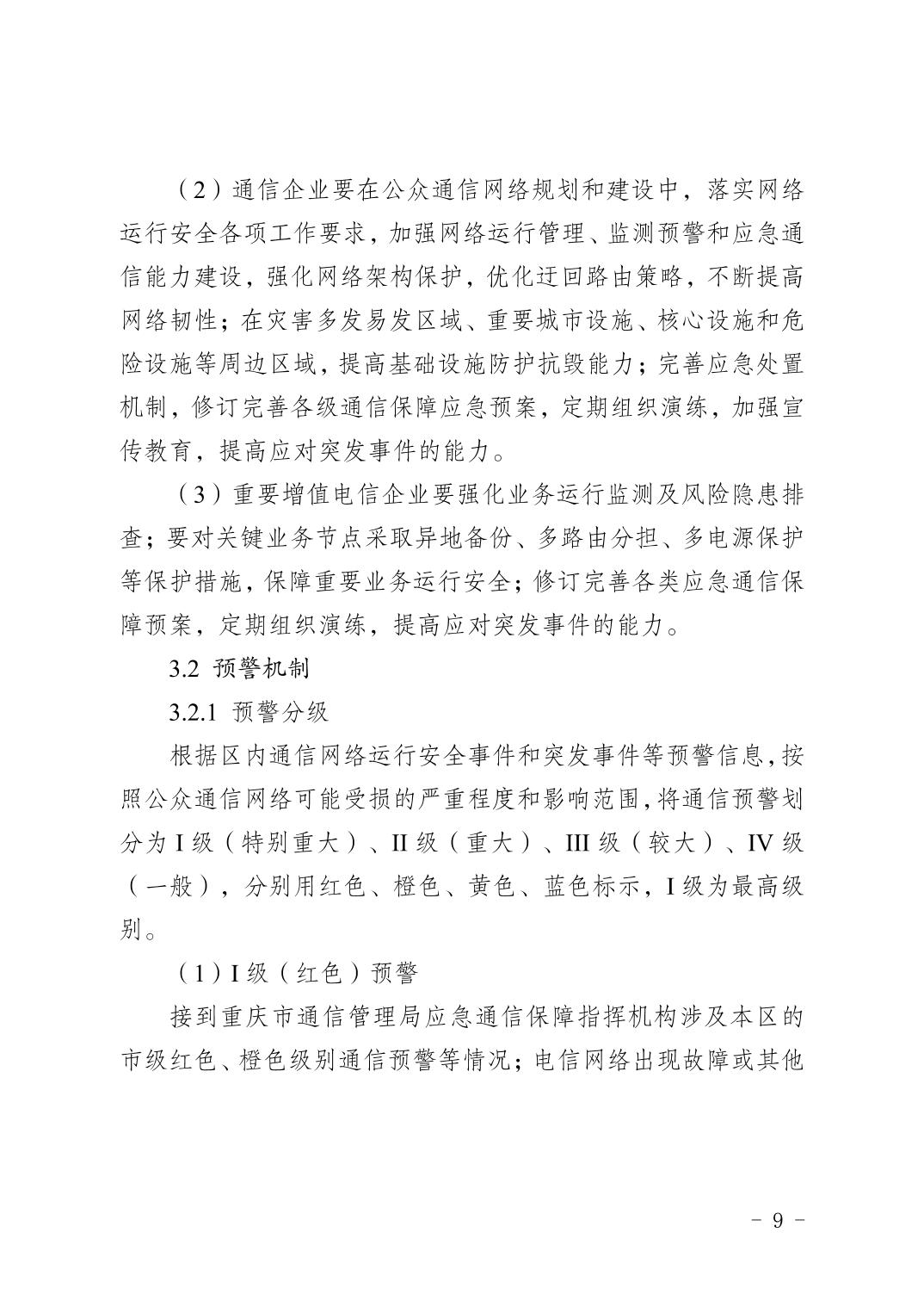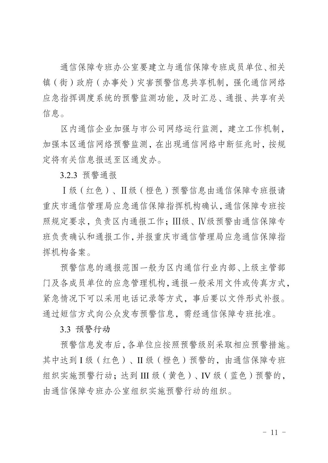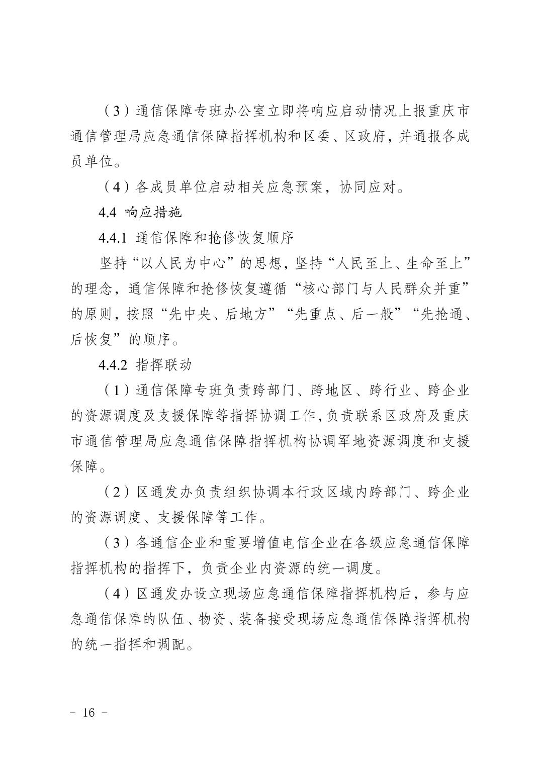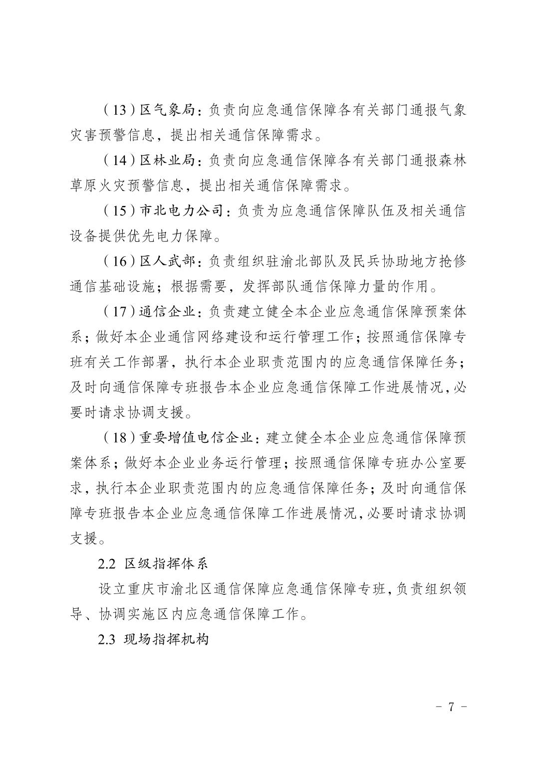 重慶市渝北區人民政府辦公室關于印發《重慶市渝北區通信保障應急預案》的通知
